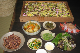 京丹後は百歳以上の方(百寿者)が多くいらっしゃいます。その長寿の秘訣は「食」からと言われ、今も受け継がれています。 海・山・川の自然の素材をふんだんに使用した長寿料理を温古里で体験ください。
